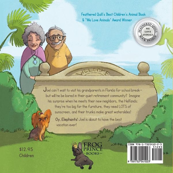Feathered Quill Book Award Winner: Best Children's Animal Book, Silver Medal for Early Readers (6-8 Years), Bronze Medal for Humor and winner of the "We Love Animals" Award. Joel can't wait to visit his grandparents in Florida for spring break-but will he be bored in their quiet retirement community? Word is there are some new neighbors moving in next door...they're LARGE, they're wrinkled, and they're retired...RETIRED CIRCUS ELEPHANTS that is! Join Joel, Grandma Gussie, Grandpa Morris and their new neighbors for the least boring spring vacation EVER! Oy, Elephants! Things are about to get interesting in the neighborhood! For boys and girls ages 4, 5, 6, 7, 8, 9; Grades Pre-K, Kindergarten, 1, 2, 3, 4 A uniquely fun story that promotes kindness, inclusion and acceptance, and can help initiate discussions about diversity, prejudice and racism in a non-threatening way children can understand.