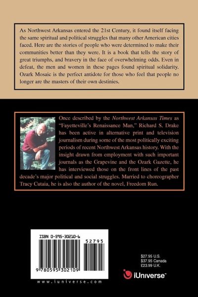 As Northwest Arkansas entered the 21st Century, it found itself facing the same spiritual and political struggles that many other American cities faced. Here are the stories of people who were determined to make their communities better than they were. It is a book that tells the story of great triumphs, and bravery in the face of overwhelming odds. Even in defeat, the men and women in these pages found spiritual solidarity. Ozark Mosaic is the perfect antidote for those who feel that people no longer are the masters of their own destinies.