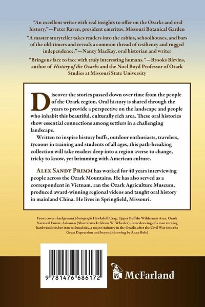 Alex Sandy Primm has worked for 40 years interviewing people across the Ozark Mountains. He has also served as a correspondent in Vietnam, ran the Ozark Agriculture Museum, produced award-winning regional videos and taught oral history in mainland China. He lives in Springfield, Missouri.