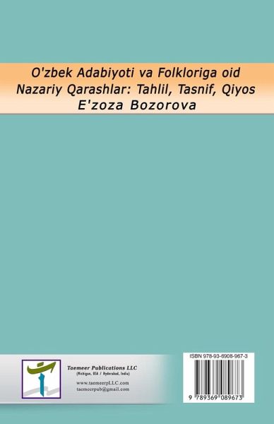 This book contains scientific and literary articles by researcher Ezoza Bozorova, reflecting her research on Uzbek poetry, prose, and the art of Uzbek epic poetry. Most of these articles have been published in a number of prestigious journals and conference proceedings in the republic and abroad, and are included in this collection. The book is intended for university students, masters and young researchers, as well as a wide readership.