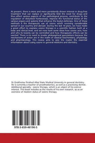 At present, there is more and more persistently shown interest in drug-free treatment that can replace or significantly limit the need for drugs and thus affect various aspects of the pathological process, contribute to the regulation of disturbed homeostasis, improve the functional status of the various organs and systems that enhance the body's defenses. One of these methods is the therapeutic use of ozone which receiving considerable spread in our country and abroad. During the last 14 years, we have made a great effort to examine ozone therapy in a scientific fashion both at a basic and clinical level, and we now have some ideas how ozone acts, how and why its toxicity can be controlled and how therapeutic effects can be exerted. There is no need to invoke philosophical speculations because the mechanisms of action are in the realm of classical biochemistry, physiology and pharmacology. This review aims to give the reader the essential information about using ozone in generalmedicine and dentistry.