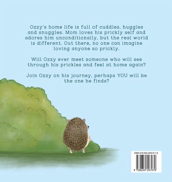 "Don't ever go near human beings," he remembered his mom warning him. But Ozzy didn't want to exclude anyone because of who or what they were... Ozzy was different, from the first moment of his spiky life. In his prickly world, huggles and cuddles were abundant, everyone could be huggled, no matter how different they seemed." Ozzy and the Prickly Huggles is a delightful picture book about inclusion, friendship, confidence, self-love and acceptance. Ozzy's home life is full of cuddles, huggles and snuggles. Mom loves his prickly self and adores him unconditionally, but the real world is different. Out there, no one can imagine loving anyone so prickly. Through fall and winter Ozzy searches for a new friend, someone who will love and accept him exactly the way he is. But the rabbit, squirrel, and Guppy don't understand - how can you cuddle and huggle a hedgehog? At first Ozzy wishes he was different, someone else, someone softer. But he doesn't give up. Ozzy's story is one of perseverance, courage, inclusion, and self-acceptance, teaching children to never ever give up on their dreams, and to love themselves and others exactly as they are.