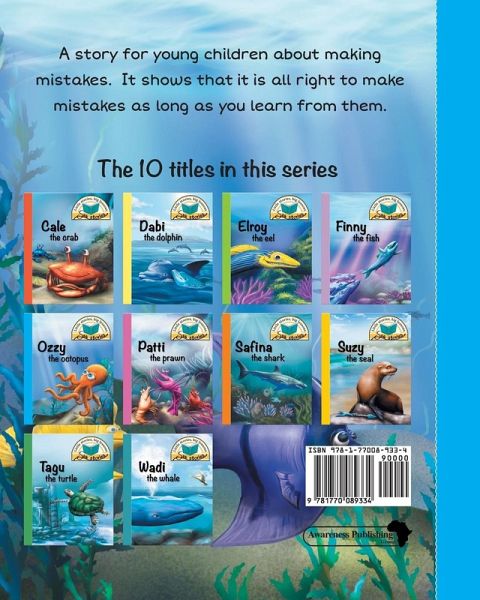 Ozzy the octopus is an entertaining story about making mistakes. It shows that it is all right to make mistakes as long as you learn from them. Take a dive into this delightful book and join Ozzy, the young octopus, on his deep-sea adventure. Ozzy the octopus is one of the ten books in the exciting Sea stories series by popular children’s author Jacqui Shepherd. Each book features a different sea creature and highlights an important life lesson through the story. The stunningly beautiful, full-colour illustrations by Matthew Ziranek bring the undersea world to life. The simple and accessible language makes these books suitable for both first- and second-language learners. They are perfect for reading to little ones and for older children to read by themselves. Other titles in the series include: Cale the crab Dabi the dolphin Elroy the eel Finny the fish Patti the prawn Safina the shark Suzy the seal Tagu the turtle Wadi the whale. Get them all! By relating to the lovable characters featured in these stories children will not only be entertained but also be encouraged to adopt values and attitudes that will help them in their daily lives. Other series by Jacqui Shepherd include: Animal adventures Bug stories Farm-tastic. Follow our Awareness Publishing Facebook page for the latest news and updates on this and other series.
