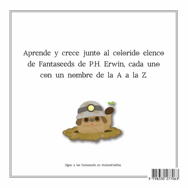 Planta una idea en tu cabeza y observa cómo crece. En 2006, se sembró una semilla, no del tipo que requiere sol y agua, sino una idea, plantada en la mente de un adolescente P.H. Erwin. Desde los humildes comienzos de un espantapájaros de maíz llamado Cobble, comenzó un viaje extraordinario. Desde entonces, esta semilla ha florecido, profundizando sus raíces con cada cuento encantador de Cobble y expandiendo su elenco de coloridos personajes, conocidos como Fantaseeds. Ahora, es el momento de que Cobble y sus amigos Fantaseeds compartan su magia con el mundo. Un libro de alfabeto fantástico como ningún otro. Dentro de sus páginas, conocerás a estos coloridos personajes, acompañados de frases ingeniosamente redactadas que cautivarán tanto a jóvenes como a mayores. Pero este libro es más que su encantador elenco; es un viaje educativo enfocado en el reconocimiento de letras y la introducción de palabras que no se encuentran comúnmente en los libros de alfabeto tradicionales. Cada página ofrece una nueva oportunidad de descubrimiento y crecimiento. Prepárate para ser encantado mientras aprendes el alfabeto con Cobble y sus amigos. Quién sabe, tal vez una semilla sea plantada en tu mente, lista para florecer en algo verdaderamente mágico.