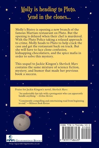 Molly is heading to Pluto. Send in the clones... Molly's Bistro is opening a new branch of the famous Martian restaurant on Pluto. But the opening is delayed when their chef is murdered. With the Pluto Police taking a relaxed approach to crime, Molly heads to Pluto to help crack the case and get the restaurant back on track. But she will have to face clone confusion, kidnapping chocolatiers, and the spice mafia if she is to solve this mystery. This sequel to Jackie Kingon's Sherlock Mars contains the same mixture of science fiction, mystery, and humor that made her previous book a success.
