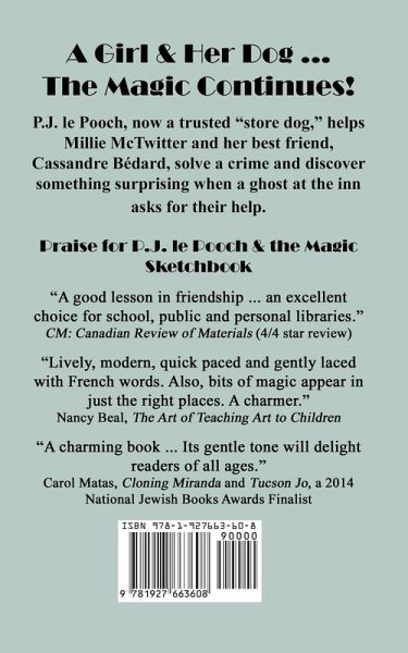A Girl & Her Dog ... The Magic Continues! In this second instalment of the P.J. le Pooch series, it is now autumn in the charming Quebec village of Brine Lake, a season of mists and magic in which the mysterious Lola Lamour continues to cast her spell. P.J. le Pooch, now a trusted "store dog" at Coin Héritage, helps 12-year-old Millie McTwitter and her best friend, Cassandre Bédard, solve a crime and discover something surprising when a ghost at the inn asks for their help.