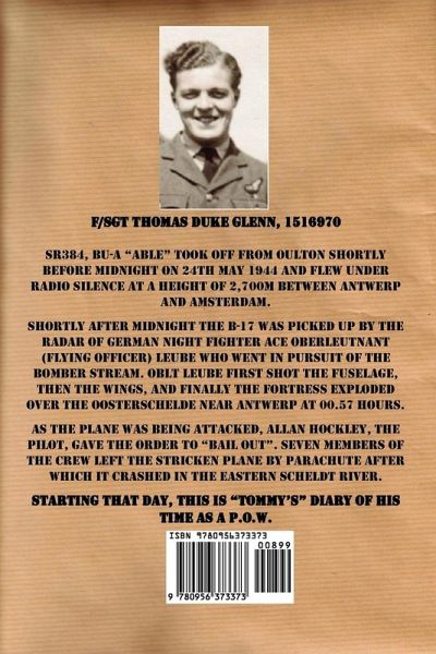A gripping and true diary account of a British P.O.W. in World War II SR384, BU-A "Able" took off from Oulton shortly before midnight on 24th May 1944 and flew under radio silence at a height of 2,700m between Antwerp and Amsterdam. Shortly after midnight the B-17 was picked up by the radar of German night fighter ace Oberleutnant (flying officer) Leube who went in pursuit of the bomber stream. Oblt Leube first shot the fuselage, then the wings, and finally the fortress exploded over the Oosterschelde near Antwerp at 00.57 hours. As the plane was being attacked, Allan Hockley, the pilot, gave the order to "bail out". Seven members of the crew left the stricken plane by parachute after which it crashed in the eastern Scheldt River. Starting that day, this is "Tommy's" diary as a P.O.W. As well as containing his thoughts and day to day events, this recreation also contains scanned images of Tommy's sketches and drawings plus details on each of the crew members of "Able", a photo of "Able" and the graves of the two men who went down with her. This book is a unique personal account of life as a P.O.W. in World War II. The log is a word-for-word recreation of the wartime diary of Tom Glenn as his time as a prisoner of war in World War II by Tom's daughter-in-law, Rosamund Glenn and Tom's grandson, Rod Glenn. Tom lived in Jesmond, Newcastle upon Tyne until his death in 2000.