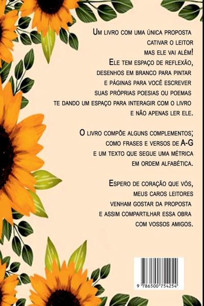 Um livro com uma única proposta cativar o leitor mas ele vai além! Ele tem espaço de reflexão, desenhos em branco para pintar e páginas para vo