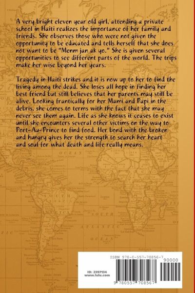 A very bright eleven year old girl, attending a private school in Haiti realizes the importance of her family and friends. She observes those who were not given the opportunity to be educated and tells herself that she does not want to be "Menm jan ak yo." She is given several opportunities to see different parts of the world. The trips make her wise beyond her years. Tragedy in Haiti strikes and it is now up to her to find the living among the dead. She loses all hope in finding her best friend but still believes that her parents may still be alive. Looking frantically for her Mami and Papi in the debris, she comes to terms with the fact that she may never see them again. Life as she knows it ceases to exist until she encounters several other victims on the way to Port-Au-Prince to find food. Her bond with the broken and hungry gives her the strength to search her heart and soul for what death and life really means.