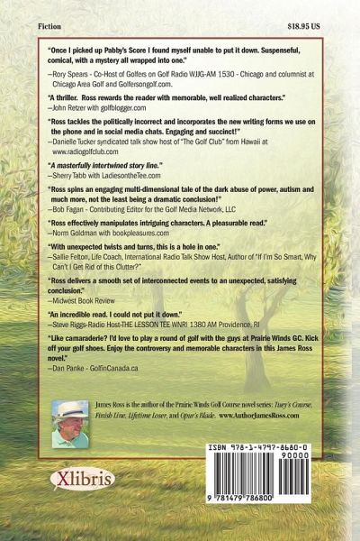 PABBY AND SHAE, TEENS WITH SPECIAL NEEDS, HOPING TO EXPAND THEIR EXPERIENCE OUTSIDE FOOTPRINTS OF HOPE FOSTER CARE CENTER ARRIVE AT PRAIRIE WINDS GOLF COURSE ON THE EAST SIDE OF ST. LOUIS. Innocence and youthful enthusiasm get caught in an undercurrent of sinister events. Civil injustice prompted by an unethical attorney arrives in the form of a bogus insurance claim. Alcohol and greed taint a dishonest judge. An Internet dating site feeds an affair. Shady police work attempts to stain the reputation of head pro, J Dub Schroeder. As the court spins out of control an ethics board investigation and an edgy game of instant messaging tempt the hands of fate. Savant-like tendencies, dementia and flying falcons intertwine with Native American customs, thoroughbred racing and a trip up the river road to Lighthouse Point. A retired barrister hints about a corrupt underground society. Can revealing a dark secret settle PABBY'S SCORE?