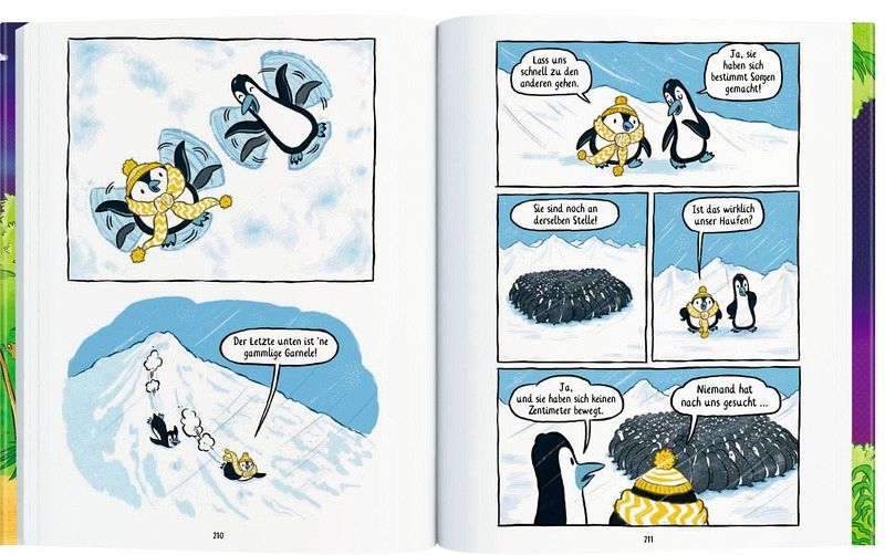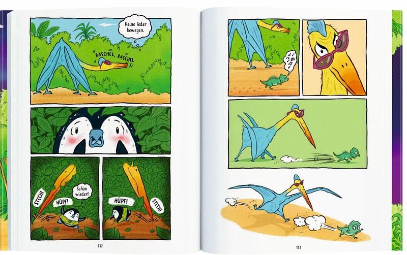 Ideal für junge Leser ab 6 Jahren, die Comics und lustige Geschichten lieben! Mit vielen Extras wie einer Pinguin-Zeichenschule und spannenden Dino-Fakten am Buchende.