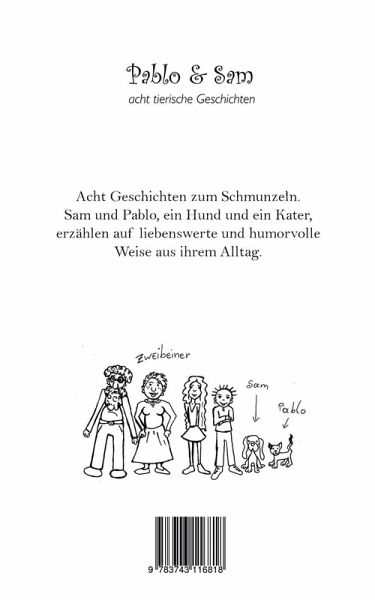 Acht Geschichten zum Schmunzeln. Sam und Pablo, ein Hund und ein Kater, erzählen auf liebenswerte und humorvolle Weise aus ihrem Leben.