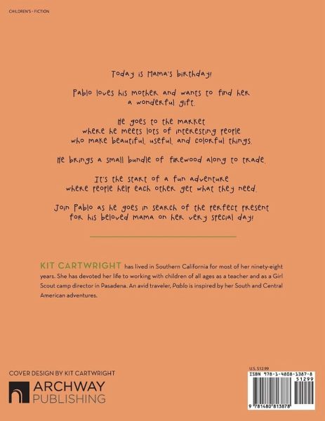 Today is Mama’s birthday! Pablo loves his mother and wants to find her a wonderful gift. He goes to the market where he meets lots of interesting people who make beautiful, useful, and colorful things. He brings a small bundle of firewood along to trade. It’s the start of a fun adventure where people help each other get what they need. Join Pablo as he goes in search of the perfect present for his beloved mama on her very special day!