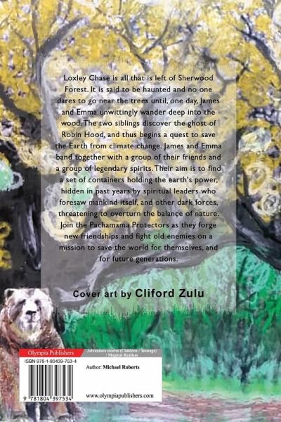 Loxley Chase is all that is left of Sherwood Forest. It is said to be haunted and no one dares to go near the trees until, one day, James and Emma unwittingly wander deep into the wood. The two siblings discover the ghost of Robin Hood, and thus begins a quest to save the Earth from climate change. James and Emma band together with a group of their friends and a group of legendary spirits. Their aim is to find a set of containers holding the earth's power, hidden in past years by spiritual leaders who foresaw mankind itself, and other dark forces, threatening to overturn the balance of nature. Join the Pachamama Protectors as they forge new friendships and fight old enemies on a mission to save the world for themselves, and for future generations.