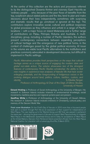 At the centre of this collection are the actors and processes referred to by the distinguished Oceania thinker and visionary Epeli Hau'ofa as 'ordinary people ... who, because of the poor flows of benefits from the top, scepticism about stated policies and the like, tend to plan and make decisions about their lives independently, sometimes with surprising and dramatic results that go unnoticed or ignored at the top'. The contributors explore innovative social, cultural and political responses to global processes as they influence and unfold in a range of Pacific locations - with a major focus on Island Melanesia and a further range of contributions on Palau, Pohnpei, Rotuma and Australia. A multidisciplinary group, including a number of Pacific Islanders, the authors present contemporary connections between expanding perceptions of cultural heritage and the emergence of new political forms, in the context of challenges posed by the global political economy. At issue in the volume are viable local Pacific alternatives to the institutions and practices commonly advocated in development discourse, but difficult to implement in Pacific settings. Pacific Alternatives provides fresh perspectives on the ways that cultural heritage serves as a unique source of engaging the modern state and global non-state actors. The volume showcases two of the strongest features of contemporary Pacific Studies scholarship: the ability to find new insights in experience-near analyses of Islander life that have world-enlarging potentials, and the foregrounding of Indigenous voices in the evolving dialogue around land, politics, culture, tradition, custom, and identity. Ty K¿wika Tengan - Professor of Anthropology & Chair of the Dept. of Ethnic Studies,University of Hawai'i