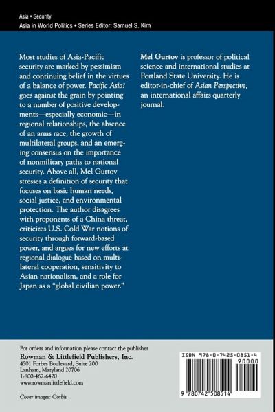 Emphasizing human and environmental security over traditional power politics, Mel Gurtov offers a provocative reinterpretation of security in the Asia-Pacific region. The author questions a number of prevailing assumptions, such as the China threat, a U.S.-centered balance of power, and the necessity of a greater Japanese security role. He argues instead for a cooperative framework for future security that focuses on people's basic needs, is sensitive to Asian nationalism, and gradually replaces military power with developmental priorities. With its concise appraisals of the security policies of the United States, China, Japan, the two Koreas, and the ASEAN countries, this work will be a valued reference for policymakers, scholars, and students alike.