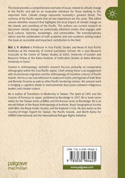 This book provides a comprehensive overview of issues related to climate change in the Pacific and will be an invaluable reference for those working in this important field. Climate change represents humanity's greatest threat. The vastness of the Pacific means that no two experiences are the same. This edited volume identifies research that highlights the local impact of climate change on the islands and coastlines of the Pacific. The authors use current research to document climate change via contextually informed studies that engages with local cultures, histories, knowledges, and communities. The transdisciplinary nature and the combination of both academic and non-academic writing makes this book an accessible and important contribution to the field.