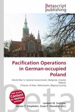 High Quality Content by WIKIPEDIA articles! The pacification operations in German-occupied Poland were the unlawful use of military force and punitive measures conducted during World War II by the German state with the goal of suppressing any Polish resistance. Pacification operations are one example of the extermination policies used against Poland and were of a massive scale, resulting in the murders of approximately 20,000 villagers. They were mainly conducted in the areas of General Government, Pomorze, and in the vicinities of Bia ystok and Wielkopolska. The number of villages which were an object of pacification in Poland is approximately 825. Collective punishment was used during such operations to discourage both the hiding of Jews or Soviet POWs, and the aiding of any guerilla forces. Pacifications included the extermination of entire villages including women and children, expulsions, the burning of homes, confiscation of private property, and arrests. In many instances these operations were characterized by extreme brutality. An example of such behaviour is the burning alive of 81 civilians and the shooting of 15 others in the village of Jab o -Dobki.