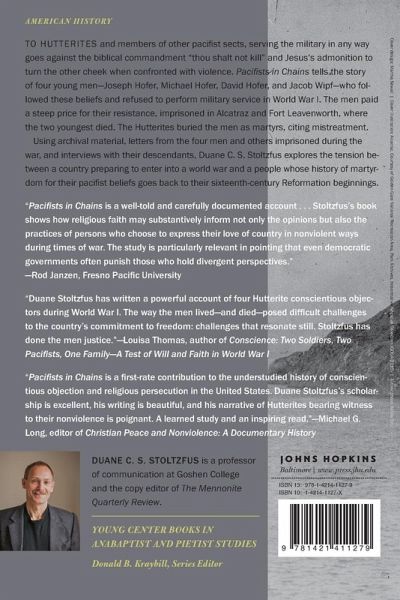 Documents the disturbing history of four pacifists imprisoned for their refusal to serve during World War I. To Hutterites and members of other pacifist sects, serving the military in any way goes against the biblical commandment "thou shalt not kill" and Jesus's admonition to turn the other cheek when confronted with violence. Pacifists in Chains tells the story of four young men--Joseph Hofer, Michael Hofer, David Hofer, and Jacob Wipf--who followed these beliefs and refused to perform military service in World War I. The men paid a steep price for their resistance, imprisoned in Alcatraz and Fort Leavenworth, where the two youngest died. The Hutterites buried the men as martyrs, citing mistreatment. Using archival material, letters from the four men and others imprisoned during the war, and interviews with their descendants, Duane C. S. Stoltzfus explores the tension between a country preparing to enter into a world war and a people whose history of martyrdom for their pacifist beliefs goes back to their sixteenth-century Reformation beginnings.