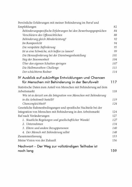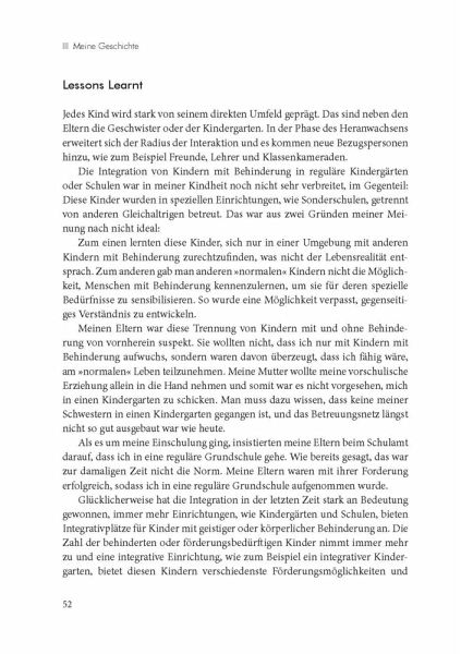 Was die Integration von Menschen mit Behinderung in die Gesellschaft und in das Berufsleben betrifft, so wurde in Deutschland bereits einiges erreicht. Dennoch sind wir noch nicht am Ziel einer vollständigen Teilhabe angekommen, bei der Individuen so akzeptiert werden, wie sie sind.Martin Lexa wurde mit einer körperlichen Behinderung geboren und schildert in diesem Buch seine persönlichen Erlebnisse im privaten und beruflichen Bereich. Er erläutert, wie er ihm zugewiesene Rollen annahm, aber sich nicht durch sie definieren ließ, sondern seinen eigenen Weg ging, allen Widrigkeiten zum Trotz. Martin Lexa will Mut machen und zum Umdenken anregen - sowohl bei staatlichen Institutionen, Unternehmen und Familien als auch bei den Betroffenen selbst. Ihnen legt er ans Herz, das Leben nach den eigenen Vorstellungen zu gestalten und sich von gesellschaftlichen Widerständen nicht aufhalten zu lassen.