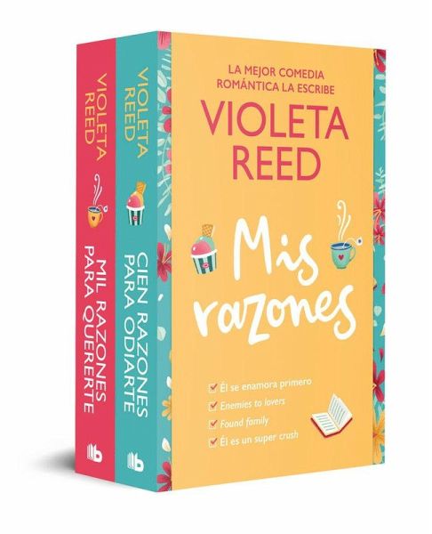 Edición pack que reúne los dos volúmenes de la apasionante bilogía best seller 'Mis razones' de Violeta Reed. Cien razones para odiarte Elena es una chica responsable, nada alocada e incapaz de sacrificar su futuro profesional por una relación. Tiene un archienemigo desde el colegio al que llama 'el Indeseable'?, y acaba de despertar junto a él en su cama después de la boda de su mejor amiga. Marcos lleva toda la vida sacando de quicio a Elena con sus comentarios de sobrado y sus ojos azules como el mar. Quiere olvidar los malos rollos y dejarse llevar durante el verano por una atracción irresistible antes de volver a Londres. Y aunque Elena intenta ignorarle, Marcos es tan obstinado como sexy y la química entre ellos resulta inevitable. _________________ Mil razones para quererte Elena y Marcos por fin han reconocido que, aunque no entraba en sus planes, están locos el uno por el otro. Pero ahora tienen que enfrentarse a un nuevo obstáculo: la distancia. Mientras ella busca su propio camino en Madrid, él debe regresar a su vida en Londres. Entre conversaciones nocturnas, mensajes subidos de tono y reencuentros fogosos, Elena y Marcos están a punto de descubrir que no hay mayor aventura que la de rendirse al amor?, aunque no siempre sea fácil. _________________