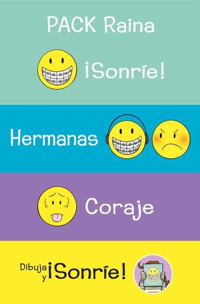 ¡Sonríe!Una tarde, Raina se tropieza y se rompe los dientes. Siguen meses tortuosos: una operación, aparato, brackets e incluso dientes falsos. Pero, además, tendrá que 'sobrevivir' a un terremoto provocado por las amigas y los primeros amores.Premio Eisner a la Mejor Publicación Infantil y JuvenilHermanasRaina siempre deseó tener una hermana, pero cuando Amara nació las cosas no fueron como esperaba. Afortunadamente, un largo viaje en coche hasta Colorado hará que se conozcan más y se acerquen.Premio Eisner al Mejor Escritor e IlustradorCorajeRaina se despierta una noche con ganas de vomitar. Lo que parece algo pasajero se convierte en la expresión física de su ansiedad. La familia, la escuela, los amigos, la timidez o la alimentación tienen parte de la culpa. Aunque va a una psicóloga, será ella quien tendrá que enfrentarse a sus miedos.Doble premio Eisner a la Mejor Publicación Infantil y Juvenil y al Mejor Escritor e IlustradorDibuja y ¡Sonríe!¿Has pensado alguna vez en contar tu propia historia, ya sea real o imaginaria? Si la respuesta es afirmativa, ¡Raina Telgemeier ha creado este divertido diario, multicolor e interactivo, para ti! ¡Crea tu propia novela gráfica! Incluye información sobre el proceso creativo de sus propias obras.