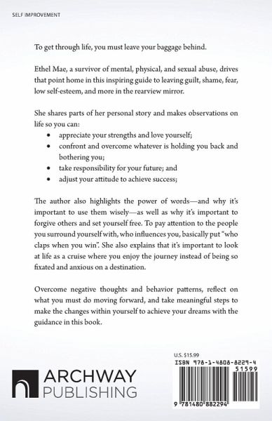 To get through life, you must leave your baggage behind. Ethel Mae, a survivor of mental, physical, and sexual abuse, drives that point home in this inspiring guide to leaving guilt, shame, fear, low self-esteem, and more in the rearview mirror. She shares parts of her personal story and makes observations on life so you can: appreciate your strengths and love yourself; confront and overcome whatever is holding you back and bothering you; take responsibility for your future; and adjust your attitude to achieve success; The author also highlights the power of words-and why it's important to use them wisely-as well as why it's important to forgive others and set yourself free. To pay attention to the people you surround yourself with, who influences you, basically put "who claps when you win". She also explains that it's important to look at life as a cruise where you enjoy the journey instead of being so fixated and anxious on a destination. Overcome negative thoughts and behavior patterns, reflect on what you must do moving forward, and take meaningful steps to make the changes within yourself to achieve your dreams with the guidance in this book.