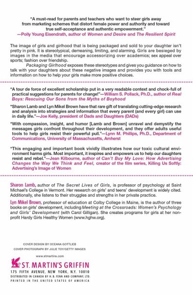 Winner of the Books for a Better Life Award Every parent who cares about empowering her daughter should own a copy." - Rachel Simmons, author of Odd Girl Out: The Hidden Culture of Aggression in Girls "...a must-read for parents and teachers who want to steer girls away from marketing schemes that distort female power and authority and toward true self-acceptance and authentic empowerment." -- Polly Young Eisendrath, author of Women and Desire and The Resilient Spirit The image of girls and girlhood that is being packaged and sold to your daughter isn't pretty in pink. It is stereotypical, demeaning, limiting, and alarming. Girls are besieged by images in the media that encourage accessorizing over academics; sex appeal over sports; fashion over friendship. Packaging Girlhood exposes these stereotypes and gives you guidance on how to talk with your daughters about these negative images and provides you with tools and information on how to help your girls make more positive choices. "A tour de force of excellent scholarship put in a very readable context and chockfull of practical suggestions for parents for change!" -- William S. Pollack, Ph.D., author of Real Boys: Rescuing Our Sons from the Myths of Boyhood "Sharon Lamb and Lyn Mikel Brown have that rare gift of translating cutting-edge research and analysis into strategies and information that every parent (and every girl) can use in daily life." -- Joe Kelly, president of Dads and Daughters (DADs) "With compassion, insight, and humor [Lamb and Brown] unravel and demystify the messages girls confront throughout their development, and they offer adults useful tools to help girls resist their powerful pull." -- Lynn M. Phillips, Ph.D., Department of Communications, University of Massachusetts, Amherst "Sharon Lamb and Lyn Mikel Brown's sharp analysis and patiently pragmatic advice is just what we need to sustain our daughter's quests for healthy identities." -Michael Kimmel, author Manhood in America, Professor, SUNY Stony Brook Sharon Lamb, author of The Secret Lives of Girls, is professor of Psychology at Saint Michael's College in Vermont. Her research on girls' and teens' development is widely cited. Additionally, she listens to their struggles and strengths in her private practice. Lyn Mikel Brown, professor of Education at Colby College in Maine, is the author of three books on girls' development, including Meeting at the Crossroads: Women's Psychology and Girls' Development (with Carol Gilligan). She creates programs for girls at her nonprofit Hardy Girls Healthy Women (www.hghw.org).