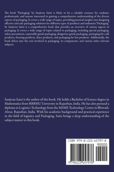 "Packaging" by Sanjivan Saini is a comprehensive book that provides an overview of various aspects of packaging. It covers a wide range of topics related to packaging, including special packaging, safety precautions, exportable goods packaging, dangerous goods packaging, packaging for cold products, freezing products, dairy products, and packaging for hot products. Additionally, the book delves into the cost involved in packaging, its components, and various other relevant subjects. Here is a brief overview of the main units covered in the book: 1. Packaging: This unit likely introduces the fundamentals of packaging, including its purpose, importance, and various applications across industries. It may cover topics such as packaging materials, design, and functions. 2. Special Packaging: The section on special packaging explores specific packaging requirements for products with unique characteristics or needs, such as medical devices, fragile items, or hazardous substances. 3. Safety Precautions: Safety is paramount in packaging. This unit likely discusses safety measures and guidelines for packaging, including how to handle hazardous materials safely and ensure compliance with regulations. 4. Exportable Goods Packaging: Exporting goods requires careful packaging to withstand the rigors of transportation. This unit would cover the packaging considerations for goods destined for international markets. 5. Dangerous Goods Packaging: This unit delves into the packaging requirements for dangerous goods, including hazardous chemicals, radioactive materials, and other substances that require specialized containment. 6. Packaging for Cold Products, Freezing Products, Dairy Products: These sections likely focus on packaging solutions for perishable goods, such as food items that need refrigeration or freezing to maintain their quality and safety. 7. Packaging for Hot Products: In contrast to the previous unit, this section would cover packaging designed to handle products that require high temperature resistance, such as hot food items or industrial materials. 8. Cost Involved, Component of Cost Involved: This unit would explore the economic aspects of packaging, including the various costs associated with packaging materials, design, production, and transportation. The book "Packaging" by Sanjivan Saini is likely to be a valuable resource for students, professionals, and anyone interested in gaining a comprehensive understanding of the diverse aspects of packaging. It covers a wide range of topics, providing practical insights into designing effective and safe packaging solutions for different types of products and industries.