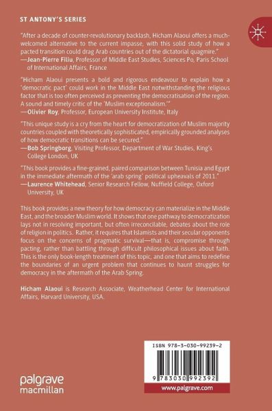 This book provides a new theory for how democracy can materialize in the Middle East, and the broader Muslim world. It shows that one pathway to democratization lays not in resolving important, but often irreconcilable, debates about the role of religion in politics. Rather, it requires that Islamists and their secular opponents focus on the concerns of pragmatic survival-that is, compromise through pacting, rather than battling through difficult philosophical issues about faith. This is the only book-length treatment of this topic, and one that aims to redefine the boundaries of an urgent problem that continues to haunt struggles for democracy in the aftermath of the Arab Spring.