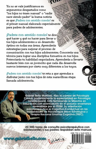 ¡Padres con sentido común! es una lectura obligada para todos aquellos padres que deseamos criar, educar y disciplinar a los hijos adolescentes, sin llevarnos mal con ellos. Ya no se vale justificarnos en argumentos desgastados como "los hijos no traen manual" o "nadie nace siendo padre" la buena noticia es que ¡Padres con sentido común! es el primer manual elaborado especialmente para padres de adolescentes. ¡Padres con sentido común! te dice qué hacer y qué no hacer para llevar a tus hijos adolescentes a un desarrollo óptimo en todas sus áreas. Aprenderás estrategias para mejorar el proceso de comunicación con tus hijos adolescentes así como técnicas para una disciplina formativa, potenciarás tu habilidad negociadora; y lo más importante, aprenderás a llevarte bastante bien con un jovencito que cada día desarrolla nuevos intereses por cierto muy diferentes a los tuyos. ¡Padres con sentido común! te anima a que aprendas a disfrutar junto con tus hijos de esta maravillosa etapa llamada adolescencia.