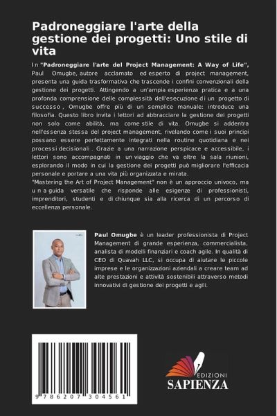 In "Padroneggiare l'arte del Project Management: A Way of Life", Paul Omugbe, autore acclamato ed esperto di project management, presenta una guida trasformativa che trascende i confini convenzionali della gestione dei progetti. Attingendo a un'ampia esperienza pratica e a una profonda comprensione delle complessità dell'esecuzione di un progetto di successo , Omugbe offre più di un semplice manuale: introduce una filosofia. Questo libro invita i lettori ad abbracciare la gestione dei progetti non solo come abilità, ma come stile di vita. Omugbe si addentra nell'essenza stessa del project management, rivelando come i suoi principi possano essere perfettamente integrati nella routine quotidiana e nei processi decisionali . Grazie a una narrazione perspicace e accessibile, i lettori sono accompagnati in un viaggio che va oltre la sala riunioni, esplorando il modo in cui la gestione dei progetti può migliorare l'efficacia personale e portare a una vita più organizzata e mirata."Mastering the Art of Project Management" non è un approccio univoco, ma una guida versatile che risponde alle esigenze di professionisti, imprenditori, studenti e di chiunque sia alla ricerca di un percorso di eccellenza personale.