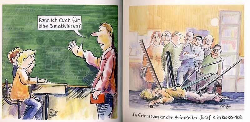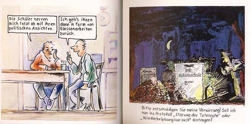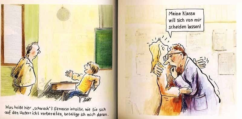 Roland Bühs ist selbst Lehrer. Er kennt die Schule von innen, und er kennt ihre Probleme. Er weiß, was Lehrer plagt: der Evaluator, das Kollegium und die Schüler. All das karikiert Bühs mit sicherem Strich. »Pädagogen-Blues« legt den Finger in die Wunden von Lehrern und Schülern. Ein Buch mit manchmal drastischen Bildern, aber kein »Lehrerhasser-Buch«.