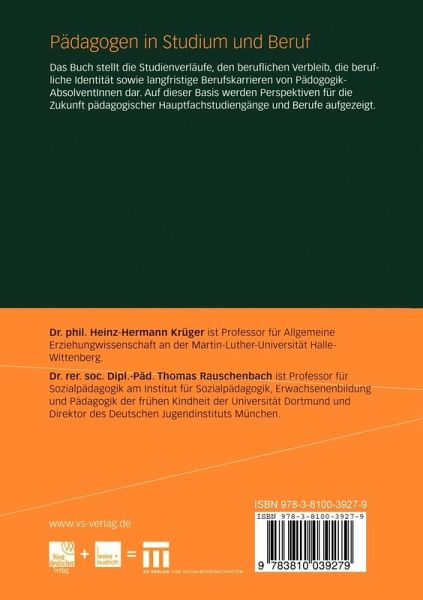 Vorwort.- 1. PädagogInnen in Studium und Beruf - eine einleitende Skizze.- I Der Magisterstudiengang Erziehungswissenschaft.- 2. Aufstieg im Schatten des Diploms? Der erziehungswissenschaftliche Magisterstudiengang.- 3. Zwischen Wissenschaftsorientierung und Berufsbezug. Das Magisterstudium und seine Studierenden.- 4. Magister-Pädagoginnen im Beruf. Empirische Befunde einer bundesweiten Befragung.- II SozialpädagogInnen zwischen Universität und Fachhochschule.- 5. FH oder Uni? Sozialpädagogische Qualifikationsprofile im Vergleich.- 6. Homogenisierte Vielfalt. Diplomierte SozialpädagogInnen auf dem Arbeitsmarkt.- III Diplom-Pädagoginnen im Kohortenvergleich.- 7. Von der politischen zur pragmatischen Generation? Diplom-Pädagoginnen im Kohortenvergleich.- 8. Berufskarrieren im Kohorten vergleich. Diplom-PädagogInnen drei, zehn und zwanzig Jahre nach dem Examen.- IV Hochschulen, Studiengänge, Arbeitsmärkte - Einflüsse von Kontextbedingungen.- 9. Einflüsse von Einzelhochschulen, - oder: Was besagen Rankings im Fach Erziehungswissenschaft.- 10. Regionale Arbeitsmärkte. Die Bedeutung regionaler Unterschiede für die Erwerbstätigkeit von Hauptfach-Pädagoginnen.- 11. Auf der Suche nach einem professionellen Leitbild. Einflüsse und ihre Wirkungen.- V Die Zukunft der Erziehungswissenschaft in Studium und Beruf.- 12. Diplom/Magister oder BA/MA? Zur Zukunft erziehungswissenschaftlicher Hauptfachstudiengänge.- 13. Das Ende einer Erfolgsgeschichte? Zur Zukunft pädagogisch-sozialer Berufe.- Literatur.- Tabellen- und Abbildungsverzeichnis.- Autorinnen und Autoren.