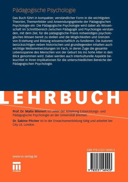 für die pädagogische Praxis notwendiges psychologisches Wissen bereit zu stellen und die Möglichkeiten und Grenzen von Erziehung und Bildung wissenschaftlich zu fundieren. Die Autoren berücksichtigen neben historischen und grundlegenden Inhalten auch wichtige Weiterentwicklungen im Fach, in deren Zuge die gesamte Lebensspanne des Menschen von der Geburt bis ins hohe Alter in den Blick genommen wird. Dabei werden auch interkulturelle Aspekte beleuchtet in ihren Implikationen für die unterschiedlichen Bereiche der Pädagogischen Psychologie.
