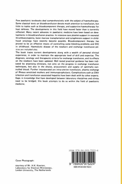 I. Historical perspectives of Haemolytic Disease of the Newborn.- I. Historical perspectives of Haemolytic Disease of the Newborn.- II. Pathogenetic aspects.- 1. The serological investigation of Haemolytic Disease of the Newborn.- 2. The laboratory investigation of ABO Haemolytic Disease of the Newborn and dangers arising from the transfusion of group O donorblood containing AB bloodgroup substance of animal origin.- 3. Haemolytic Disease: clinical diagnosis.- 4. Discussion.- III. Preventative aspects.- 1. The supply of anti-Rhesus (D) immunoglobulin in the Netherlands.- 2. Anti-Rhesus (D) immunoglobulin: indications, clinical use and effect on incidence of Haemolytic Disease of the Newborn.- 3. Discussion.- IV. Therapeutic aspects.- A. Metabolic aspects.- 1. Haemolytic Disease of the Newborn: an overview of the principles of therapy.- 2. The use of component therapy in the newborn.- 3. Metabolic effects of exchange transfusion.- 4. Exchange transfusion: metabolic aspects and biochemical changes.- 5. Discussion.- B. Practical aspects.- 1. Paediatrics and bloodtransfusion: practical aspects.- 2. Practical aspects of exchange transfusion.- 3. Indications for exchange transfusion and choice of treatment for Haemolytic Disease of the Newborn.- 4. Progress in exchange transfusion techniques.- 5. Practical experience in neonatal exchange transfusion.- 6. Exchange transfusion in the Netherlands: a personal view.- 7. Discussion.- C. Special Techniques.- 1. Use of infusion pumps for paediatric blood transfusion.- 2. Prevention of severe Haemolytic Disease of the Newborn by weekly small-volume plasmapheresis during pregnancy.- 3. Intra-uterine fetal transfusion in severe Rh-iso immunisation.- 4. Development of infants surviving intrauterine transfusion.- 5. Discussion.- D. Risksof transmitting disease.- 1. Cytomegalovirus infections.- 2. Serodiagnosis and control in viral hepatitis.- 3. Discussion.- V. Intensive care of the neonate.- 1. Some aspects of neonatal thrombocytopenia.- 2. Cytapheresis support in childhood oncology.- 3. Platelet transfusion in bone marrow transplantation in children.- 4. Discussion.- VI. Concluding remarks.- VI. Concluding remarks.