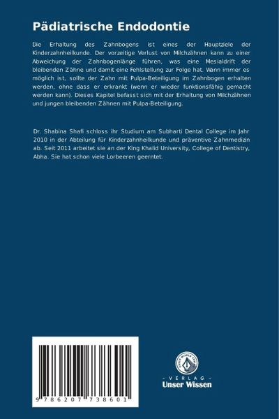 Die Erhaltung des Zahnbogens ist eines der Hauptziele der Kinderzahnheilkunde. Der vorzeitige Verlust von Milchzähnen kann zu einer Abweichung der Zahnbogenlänge führen, was eine Mesialdrift der bleibenden Zähne und damit eine Fehlstellung zur Folge hat. Wann immer es möglich ist, sollte der Zahn mit Pulpa-Beteiligung im Zahnbogen erhalten werden, ohne dass er erkrankt (wenn er wieder funktionsfähig gemacht werden kann). Dieses Kapitel befasst sich mit der Erhaltung von Milchzähnen und jungen bleibenden Zähnen mit Pulpa-Beteiligung.