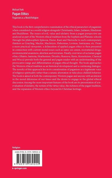 This book is the first comprehensive examination of the ethical parameters of paganism when considered as a world religion alongside Christianity, Islam, Judaism, Hinduism and Buddhism. The issues of evil, value and idolatry from a pagan perspective are analyzed as part of the Western ethical tradition from the Sophists and Platonic schools through the philosophers Spinoza, Hume, Kant and Nietzsche to such contemporary thinkers as Grayling, Mackie, MacIntyre, Habermas, Levinas, Santayana, etc. From a more practical viewpoint, a delineation of applied pagan ethics is then presented in connection with current moral issues such as same-sex union, recreational drugs, environmental awareness, abortion and terrorism. Finally, overviews of sectarian pagan ethics (Shinto, Santeria, Heathenism, Druidry, Romuva, Slavic, Kemeticism, Classical and Wicca) provide both the general and pagan reader with an understanding of the provocative range and differentiation of pagan ethical thought. The book approaches the Western ethical tradition as an historical development and a continuing dialogue. The novelty of this approach lies in its consideration of paganism as a legitimate voice of religious spirituality rather than a satanic aberration or ridiculous childish behavior. The book is aimed at both the contemporary Western pagan and anyone with an interest in the moral dilemmas of our times and the desire to engage in the global ethical discussion. Among the more important features of the book are its presentation of a re-evaluation of idolatry, the notion of the virtue value, the richness of the pagan tradition, and the expansion of Western ethics beyond its Christian heritage.