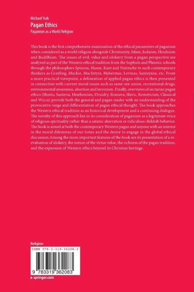 This book is the first comprehensive examination of the ethical parameters of paganism when considered as a world religion alongside Christianity, Islam, Judaism, Hinduism and Buddhism. The issues of evil, value and idolatry from a pagan perspective are analyzed as part of the Western ethical tradition from the Sophists and Platonic schools through the philosophers Spinoza, Hume, Kant and Nietzsche to such contemporary thinkers as Grayling, Mackie, MacIntyre, Habermas, Levinas, Santayana, etc. From a more practical viewpoint, a delineation of applied pagan ethics is then presented in connection with current moral issues such as same-sex union, recreational drugs, environmental awareness, abortion and terrorism. Finally, overviews of sectarian pagan ethics (Shinto, Santeria, Heathenism, Druidry, Romuva, Slavic, Kemeticism, Classical and Wicca) provide both the general and pagan reader with an understanding of the provocative range and differentiation of pagan ethical thought. The book approaches the Western ethical tradition as an historical development and a continuing dialogue. The novelty of this approach lies in its consideration of paganism as a legitimate voice of religious spirituality rather than a satanic aberration or ridiculous childish behavior. The book is aimed at both the contemporary Western pagan and anyone with an interest in the moral dilemmas of our times and the desire to engage in the global ethical discussion. Among the more important features of the book are its presentation of a re-evaluation of idolatry, the notion of the virtue value, the richness of the pagan tradition, and the expansion of Western ethics beyond its Christian heritage.