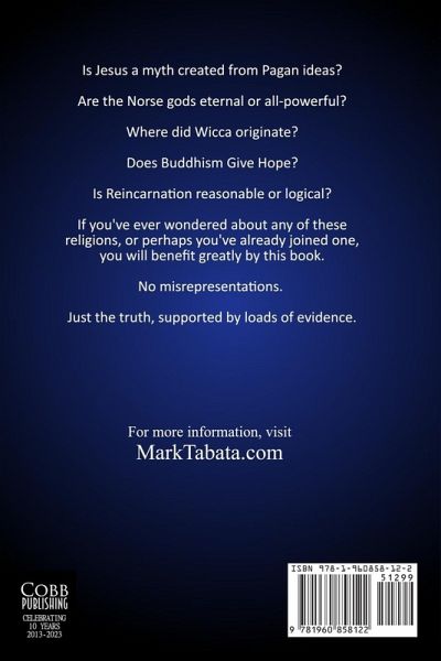 Is Jesus a myth created from Pagan ideas? Are the Norse gods eternal or all-powerful? Where did Wicca originate? Does Buddhism Give Hope? Is Reincarnation reasonable or logical? If you've ever wondered about any of these religions, or perhaps you've already joined one, you will benefit greatly by this book. No misrepresentations. Just the truth, supported by loads of evidence.