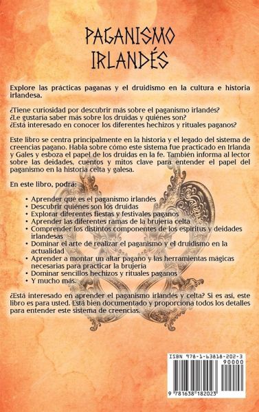 Explore las prácticas paganas y el druidismo en la cultura e historia irlandesa. ¿Tiene curiosidad por descubrir más sobre el paganismo irlandés? ¿Le gustaría saber más sobre los druidas y quiénes son? ¿Está interesado en conocer los diferentes hechizos y rituales paganos? Este libro se centra principalmente en la historia y el legado del sistema de creencias pagano. Discute cómo este sistema fue practicado en Irlanda y Gales y esboza el papel de los druidas en la fe. También informa al lector sobre las deidades, cuentos y mitos clave para entender el papel del paganismo en la historia celta y galesa. En este libro, podrá: Aprender qué es el paganismo irlandés Descubrir quiénes son los druidas Explorar diferentes fiestas y festivales paganos Aprender las diferentes ramas de la brujería celta Comprender los distintos componentes de los espíritus y deidades irlandesas Dominar el arte de realizar el paganismo y el druidismo en la actualidad Aprender a montar un altar pagano y las herramientas mágicas necesarias para practicar la brujería Dominar sencillos hechizos y rituales paganos Y mucho más. ¿Está interesado en aprender el paganismo irlandés y celta? Si es así, este libro es para usted. Está bien documentado y proporciona todos los detalles para entender este sistema de creencias. Haga clic en el botón "añadir al carrito" ahora y embárquese en un maravilloso viaje de descubrimiento.