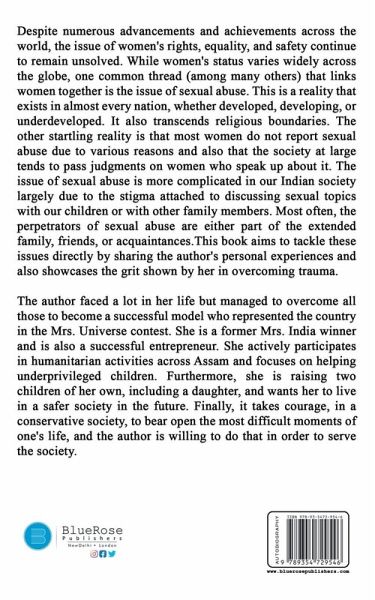 Despite numerous advancements and achievements across the world, the issue of women rights, equality, and safety continue to remain an unsolved issue. While women status varies widely across the globe, one common thread (among many others) that links women together is the issue of sexual abuse. This is a reality that exists in almost every nation, whether developed, developing, or underdeveloped. It also transcends religious boundaries. The other startling reality is that most women do not report sexual abuse due to various reasons and society at large tends to also pass judgments on women who speak up. The issue of sexual abuse is more complicated in our Indian society due largely due to the stigma attached to discussing sexual topics with our children or with other family members. Most often, the perpetrators of sexual abuse are either part of the extended family, friends, or acquaintances. This book aims to tackle these issues directly by sharing the author personal experiences and showcases the grit shown by her in overcoming trauma.