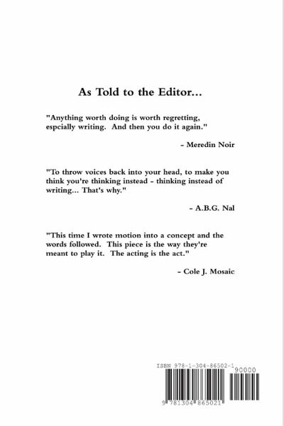 Three short plays, the work of three American voices all 15 pages or less, are presented by Garon Taylor-Tyree.