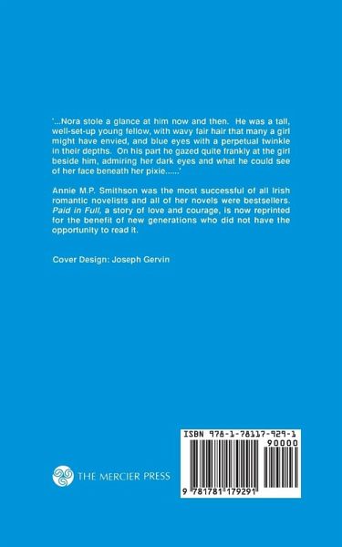 Annie M. P. Smithson was the most successful of all Irish romantic novelists. Paid in Full, a story of love and courage, is now reprinted for the benefit of new generations who did not have the opportunity to read it.