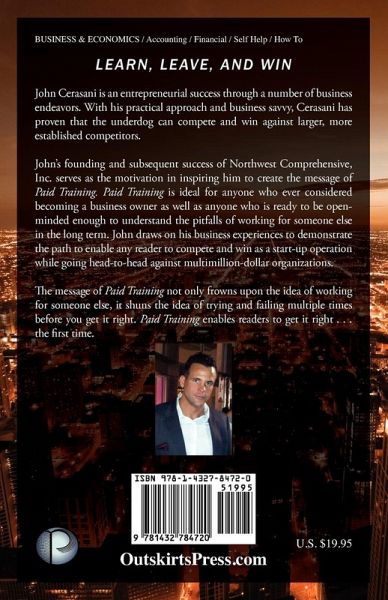 John Cerasani, a Chicago area native and Northwestern University alum, is an entrepreneurial success through a number of business endeavors. With his practical approach and business savvy, Cerasani has proven that the underdog can compete and win against larger, more established competitors. John's founding and subsequent success of Northwest Comprehensive, Inc. serves as the motivation in inspiring him to create the message of Paid Training. Paid Training is ideal for anyone who ever considered becoming a business owner as well as anyone who is ready to be open-minded enough to understand the pitfalls of working for someone else in the long term. John draws on his business experiences to demonstrate the path to enable any reader to compete and win as a start-up operation while going head-to-head against multimillion-dollar organizations. John is clear in his message that this is not a motivational book that encourages readers to quit their jobs; it's a guide that demonstrates how to evaluate, strategize, implement and then execute a plan to assure that your business flourishes. The message of Paid Training not only frowns upon the idea of working for someone else, it also shuns the idea of trying and failing multiple times before you get it right. Paid Training enables readers to get it right . . . the first time.
