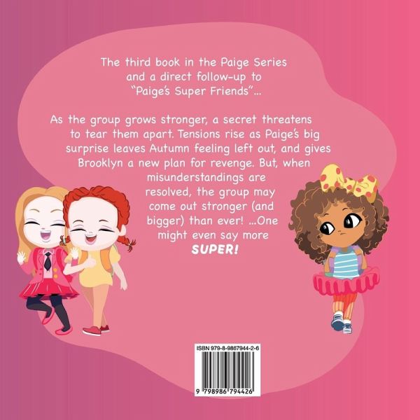 The third book in the Paige Series and a direct follow-up to "Paige's Super Friends"...As the group grows stronger, a secret threatens to tear them apart. Tensions rise as Paige's big surprise leaves Autumn feeling left out, and gives Brooklyn a new plan for revenge. But, when misunderstandings are resolved, the group may come out stronger (and bigger) than ever! ....One might even say more super!