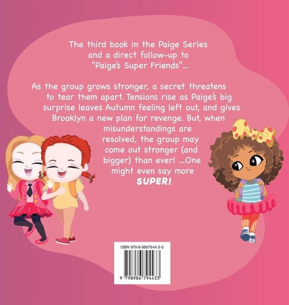 The third book in the Paige Series and a direct follow-up to "Paige's Super Friends"...As the group grows stronger, a secret threatens to tear them apart. Tensions rise as Paige's big surprise leaves Autumn feeling left out, and gives Brooklyn a new plan for revenge. But, when misunderstandings are resolved, the group may come out stronger (and bigger) than ever! ....One might even say more super!