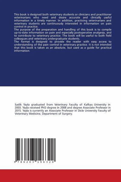 This book is designed both veterinary students or clinicians and practitioner veterinarians who need and desire accurate and clinically useful information in a timely manner. In addition, practicing veterinarians and veterinary students are continuously interested in information on pain control in practice. The purpose of the preparation and handling of this book is to compile up-to-date information on pain and especially postoperative analgesia, and to contribute to veterinary practice. The book will be useful to both field colleagues and veterinary undergraduate students. The format is designed to provide the reader with easy access to understanding of the pain control in veterinary practice. It is not intended that this book is taken as an absolute, but used as a guide for practical information.
