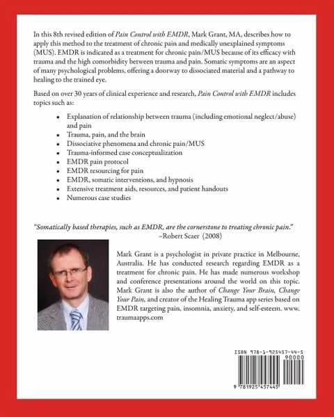 The 8th revised edition of this research-based manual describes how to use EMDR in the treatment of chronic pain. Includes a review of role of trauma and attachment problems in pain, neurological aspects of pain, Theoretical model of pain based on Accelerated Information Processing Model, step by step EMDR pain protocol, including detailed notes and tips for each stage, key differences between trauma protocol and pain protocol, advice about common blockages and how to deal with them, how to enhance client responsiveness to bilateral stimulation, how to develop strong affect-based resources for coping with on-going pain, adjunctive strategies and resources, assessment tools, information about dissociation and pain, numerous case-examples, and over 30 pages of photocopyable treatment aids and resources. After PTSD, pain is the most researched application of EMDR.