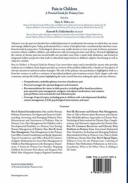 This book covers these topics and is intended for anyone who provides medical care to children. Each chapter provides an overview of the problem, followed by a "hands on"description of relevant assessment and intervention strategies. The role of the primary care practitioner is highlighted, both as a front-line resource as well as a consumer of specialized pediatric pain treatment services. Each chapter ends with a summary and specific bullet points highlighting the most central elements, making for quick and easy reference.